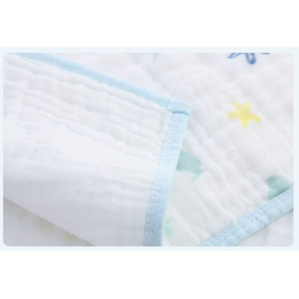 The multi-layer printed cotton gauze is made of pure cotton, which has good hygroscopicity, antibacterial and mite removal, and the gauze towel is easy to clean, quick-drying, effectively inhibits the growth of bacteria, and is close to the skin, not irritating, and has no odor. Healthy, beautiful and no lint, the gauze towel can drain the loops well, without worrying about hair loss, to prevent the baby from inhaling the fluff into the lungs, and the gauze towel has a cute design and beautiful color, and the baby will like it very much. The gauze with multiple superior functions is loved by people, and it is widely used in baby blankets, towels, swaddles, and bedding.